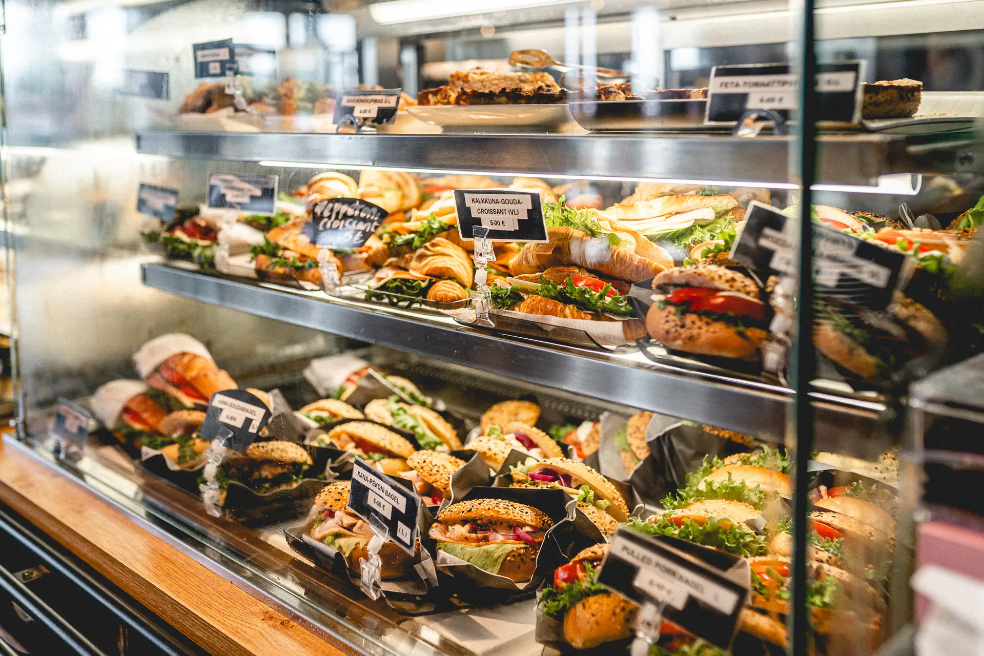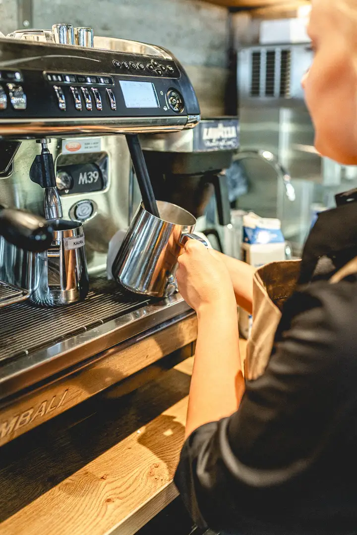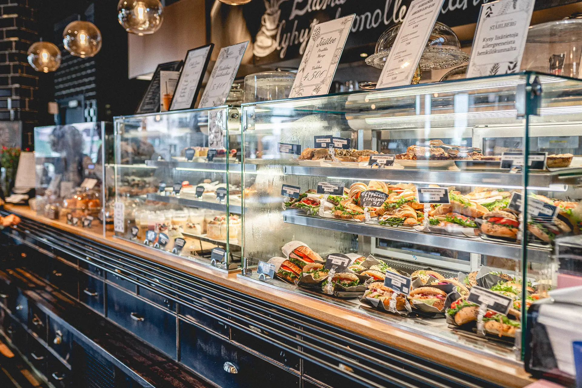 Vitriinistä löytyy päivittäin tuoreita makeita leivonnaisia, suolaisia vaihtoehtoja ja kevyempiä herkkuja. Tarjolla on laadukasta kahvia, suosittuja erikoiskahveja sekä teevalikoima rauhalliseen kahvihetkeen.