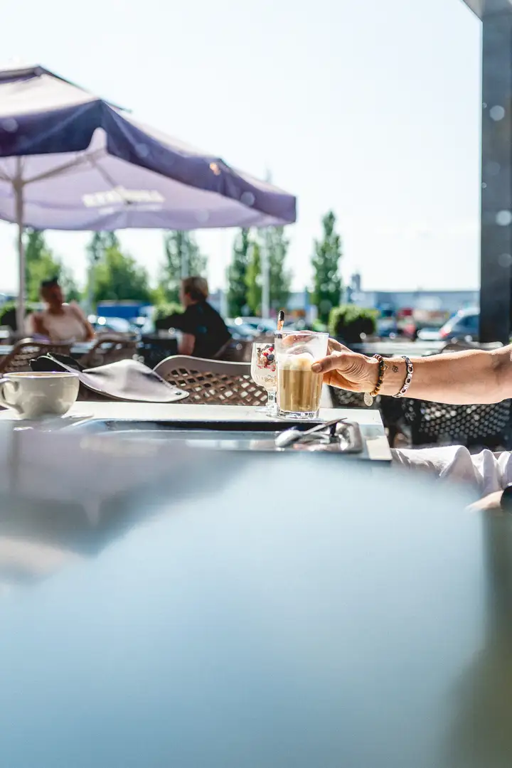 Kesäisin kahvila Veska Pirkkalassa houkuttelee viihtymään myös tilavalle terassille, jossa kahvi, kylmät juomat ja tuoreet herkut maistuvat erityisen hyvältä ostospäivän lomassa.