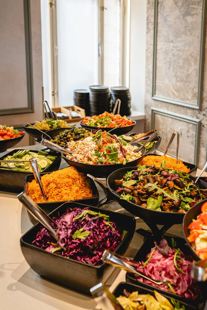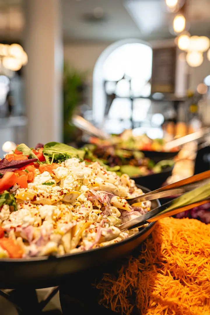 Lounasbuffet sisältää runsaan salaattipöydän, leivät levitteineen, ruokajuomat sekä vaihtuvan jälkiruoan kahvin tai teen kera. Pidätämme oikeuden muutoksiin.
